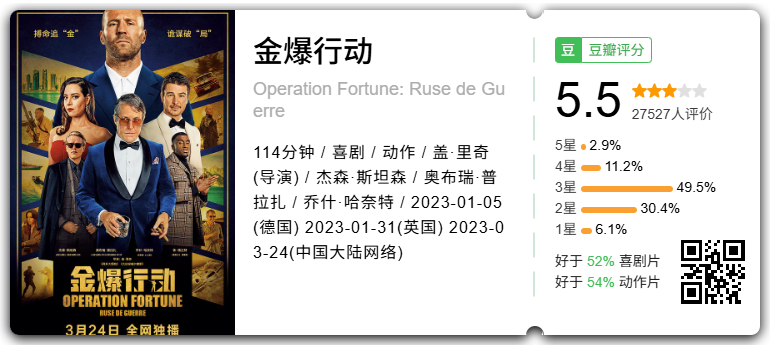 金爆行动 (2023)【4K原盘 / REMUX / HDR】【杜比视界】[已刮削][英国 / 中国大陆 / 土耳其 / 美国] [喜剧 / 动作] 5.5 高分【77.6G】 8月25日 11 4K专区夸克网盘 DB君 这家伙很懒,什么都没有留下... 关注 已关注 私信 金爆行动的剧情简介 · · · · · · 深夜,一批戒备森严的神秘货物被盗窃劫持……以奥森为首的特工团队被政府安全部门勒令秘密调查此次事件。经调查,神秘货物名叫“密匣”,是一款可编程人工智能程序,拥有它的人可随心所欲地控制军事、金融等世界上任何的电子系统。“密匣”已在黑市上进行高价炒卖,亿万身家的军火商格雷格则是这宗地下买卖的交易中介。奥森决定前往交易现场假扮接头人,但意想不到的是另有一支队伍横空出现抢走了“密匣”,奥森和他的队伍能否再次杀出重围并完成拯救世界的任务? 动作喜剧